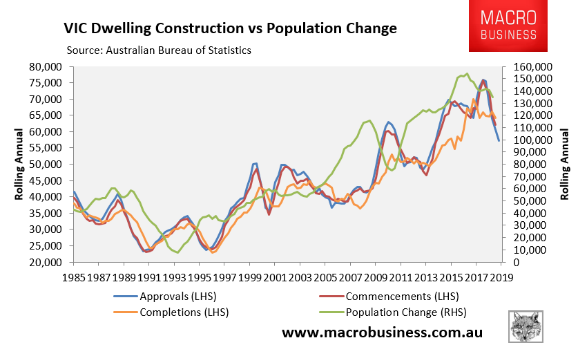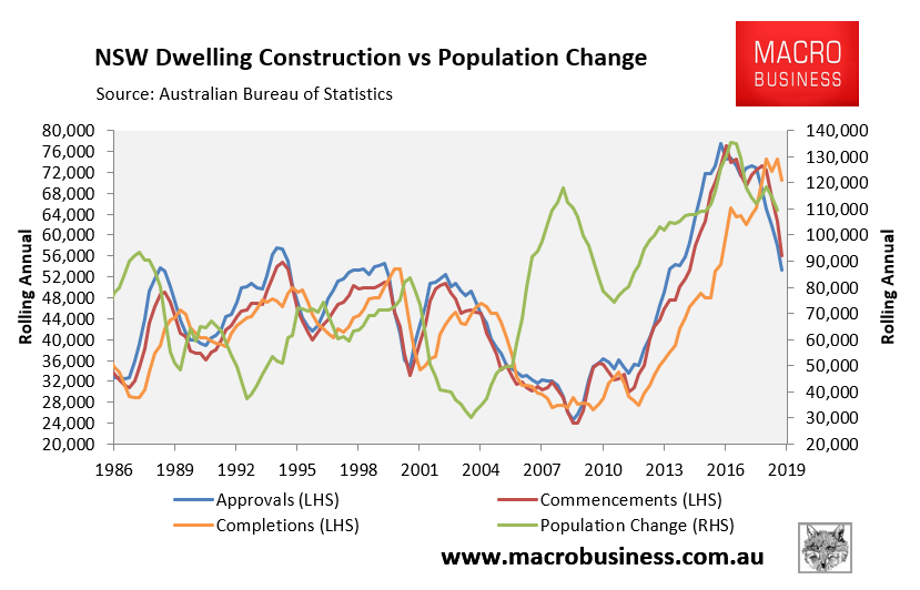 Overall, dwelling construction is facing an enormous bust at the same time as population growth remains strong.