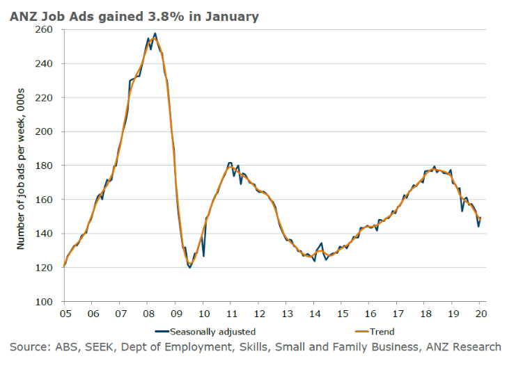 ANZ Australian Job Ads increased by 3.8 per cent in January 2020 following a 5.7 per cent fall in December 2019.