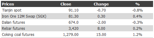 Everything roughly flat. Iron ore port stocks fell to 128.6mt: