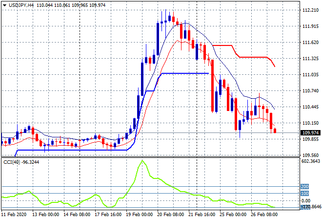 Japanese share markets are steeply selling off due to a big increase in Yen buying with the Nikkei 225 falling another 2% to 21948points. The USDJPY pair was unable to bounceback from its previously stable trading range, flopping below the 110 handle and almost making a new daily low and confirming the risk-off mood: