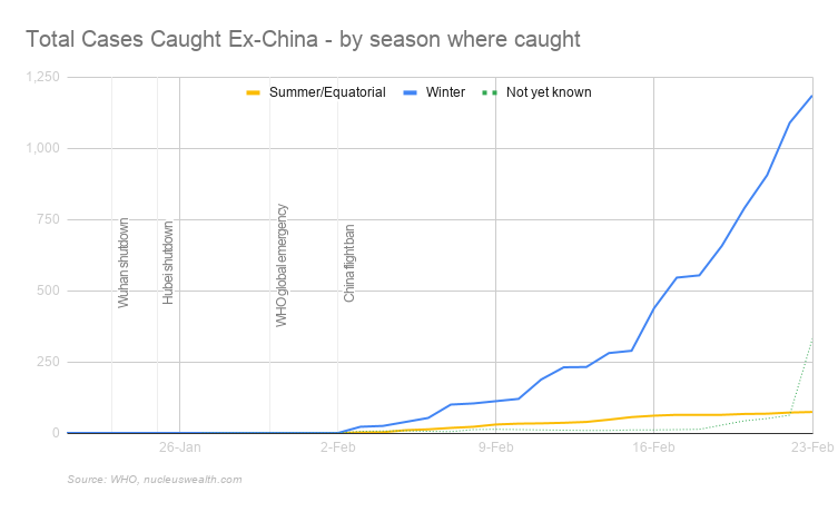 Our base case is equatorial countries avoid significant outbreaks. But, our faith in that forecast is low. If one of the above succumbs to an epidemic, then it is likely they all will. Even if contained, there is a relatively high likelihood that in four months, when the southern hemisphere winter starts, other developing countries will see outbreaks.