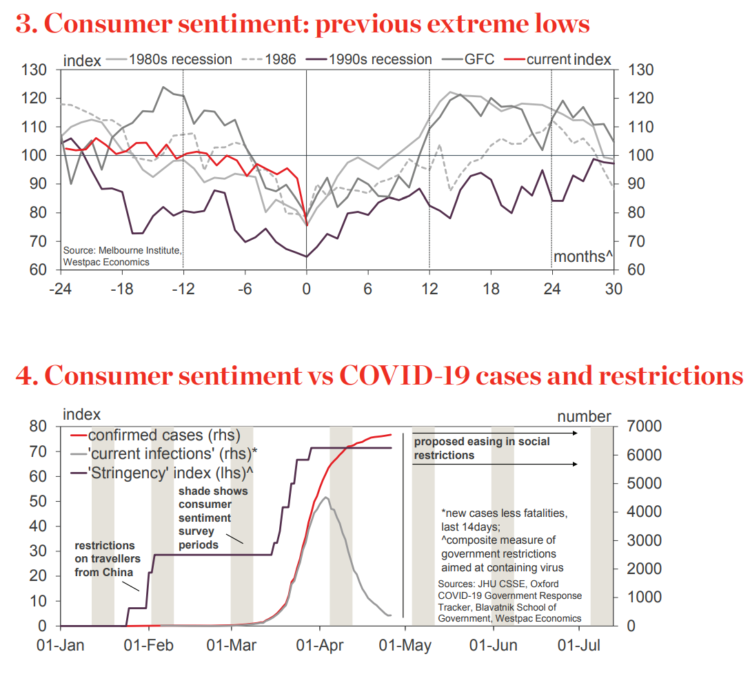 ― While the April fall is severe, it could well have been worse. Despite the bleak and threatening backdrop, Australia’s pandemic experience has been less debilitating than for many of our peers abroad. Consumer Sentiment remains above the record lows seen during the darkest days of the early 1990s recession.