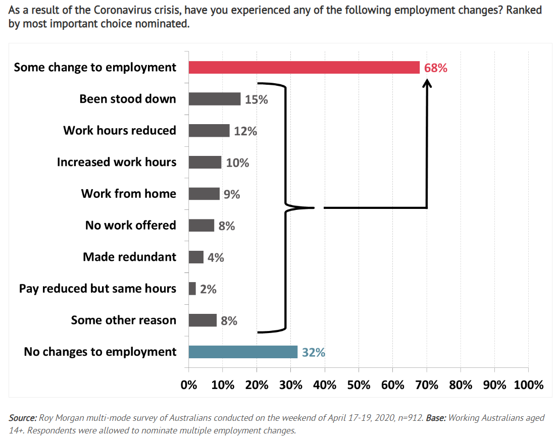 According to Roy Morgan, 68% of Australian workers have been directly impacted, most negatively: