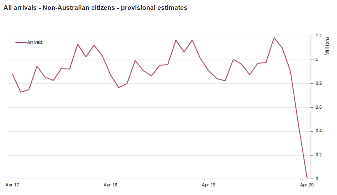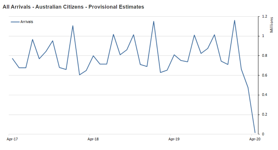 COVID-19 travel restrictions saw a 99 per cent decrease in overseas arrivals to Australia in April 2020, compared with April 2019 according to provisional data released today by the Australian Bureau of Statistics (ABS).