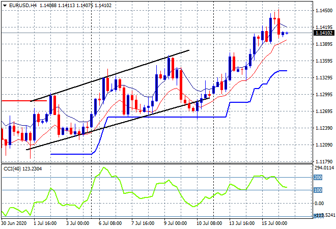 European markets rose sharply at the open, with broad finishes across the continent as the German DAX closed 1.8% higher to 12930 points, although it retracing a small amount later in futures thereafter as Wall Street ended a bit sour. The daily chart continues to show a steady uptrend from the early June lows and a retest of the 12900 high as expected, almost matching the previous early June highs in what looks like a blowoff trade: