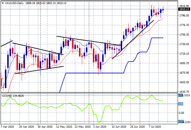 Gold is still finding its legs after a worrying few sessions, and was unable to advance past any intrasession highs overnight, stabilizing at the $1810USD per ounce level. The next test is matching and then exceeding the $1815 level as the trend gets back on a more sustainable path: