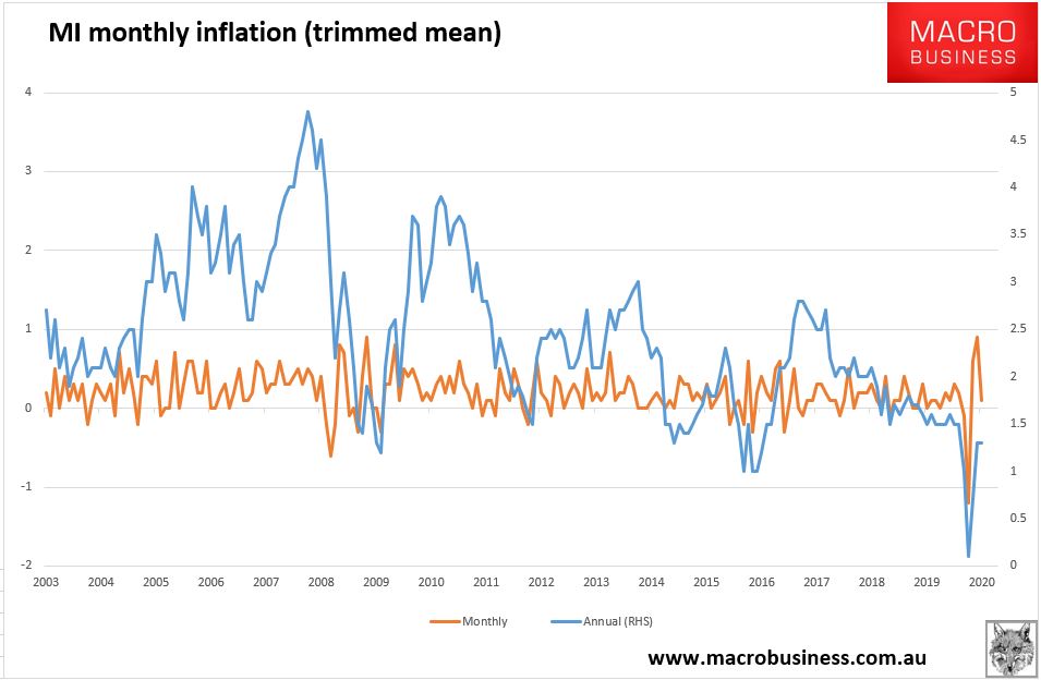 Via Melbourne Institute today, August inflation at 0.1% for the month and 1.3% for the year: