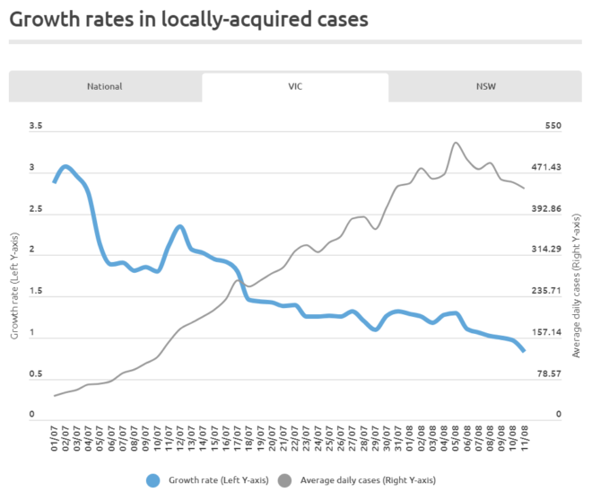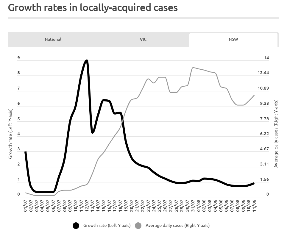 NSW’s infection growth rate has also ticked up towards one: