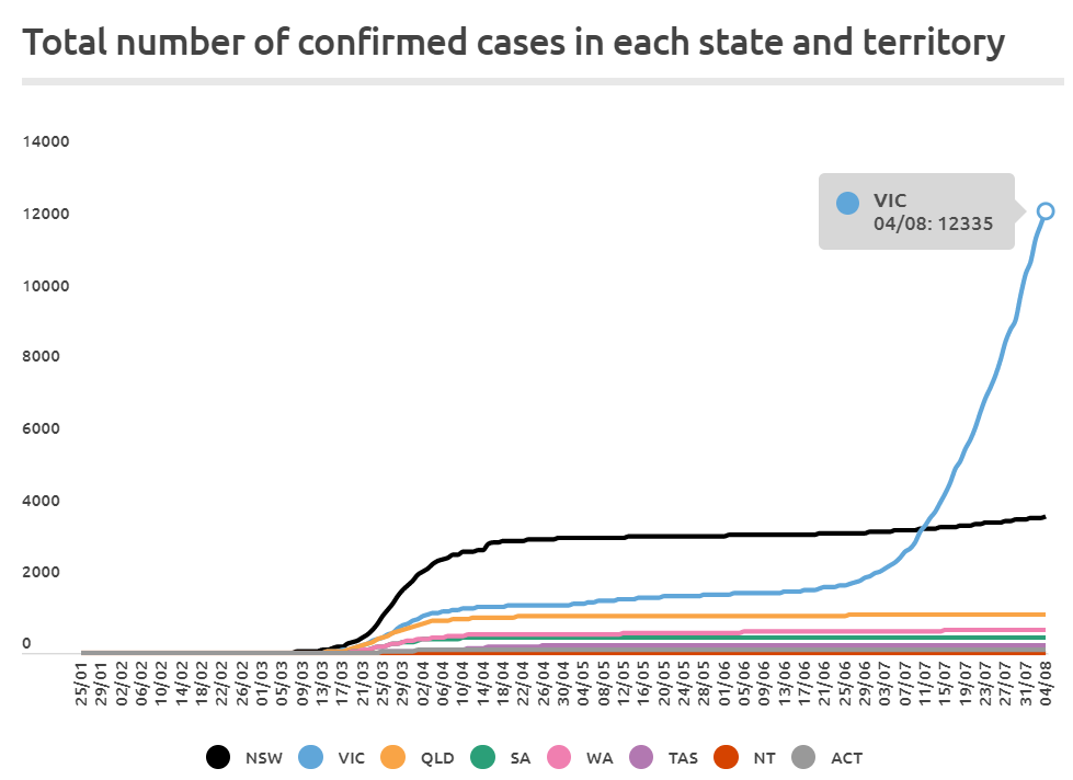 NSW, by contrast, only recorded 12 new COVID-19 infections and is doing a far better job managing outbreaks: