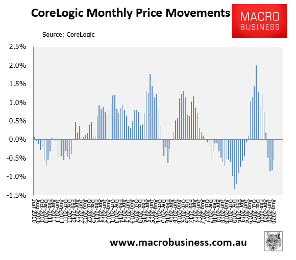 Over the August quarter, dwelling values fell by 2.2% across the major capitals: