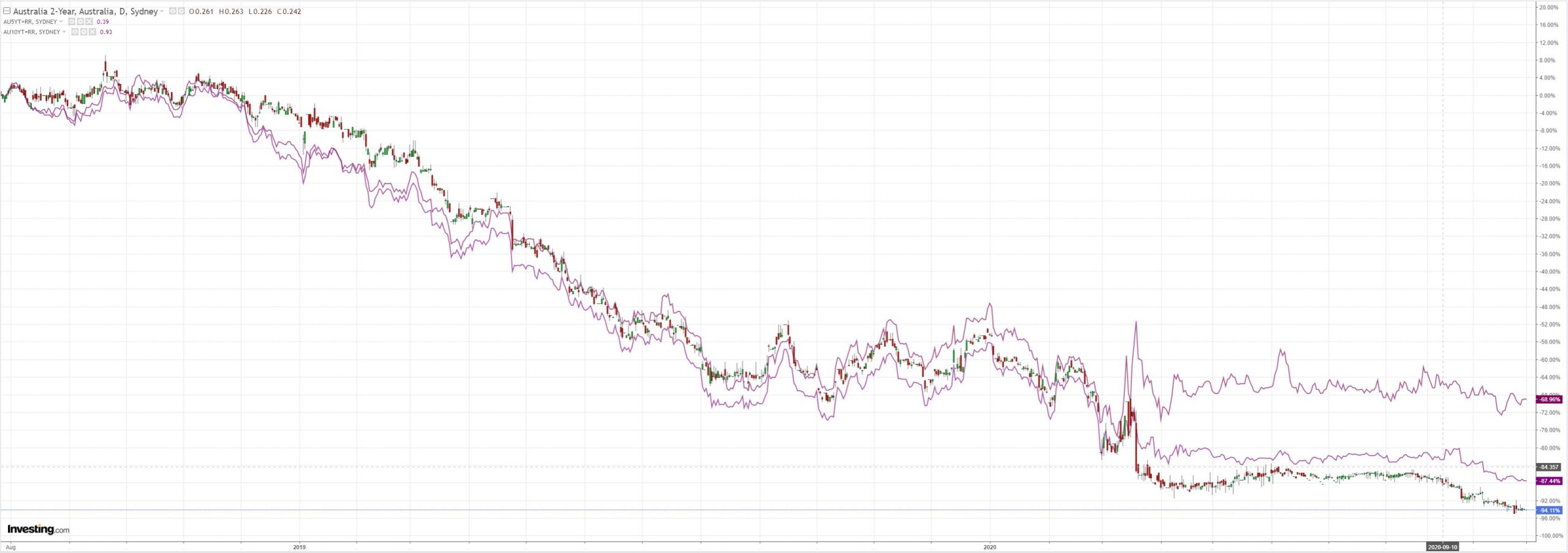 The Australian dollar is down this morning and in serious jeopardy of taking out the lows. It briefly hit four-month lows