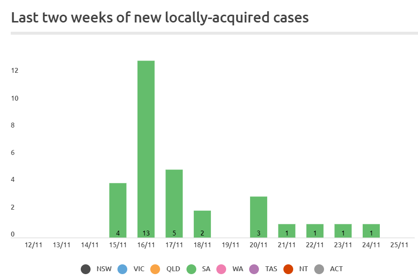 Australia has recorded only 7 new local COVID-19 infections over the past week, all of which were in South Australia: