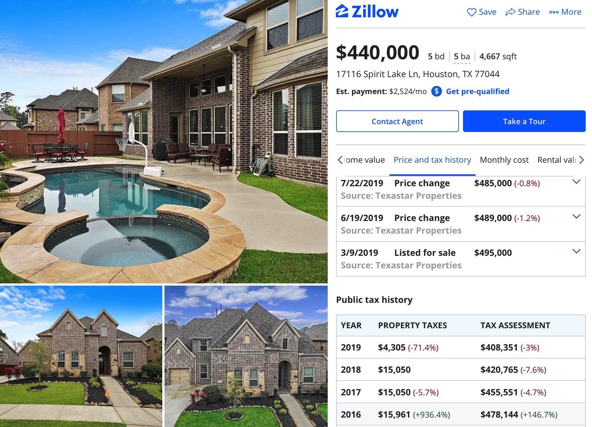 The high upkeep costs (aka depreciation) come from its size and features, such as the pool. Notice that property taxes are around $15,000 per year for this dwelling, which is over 3%.