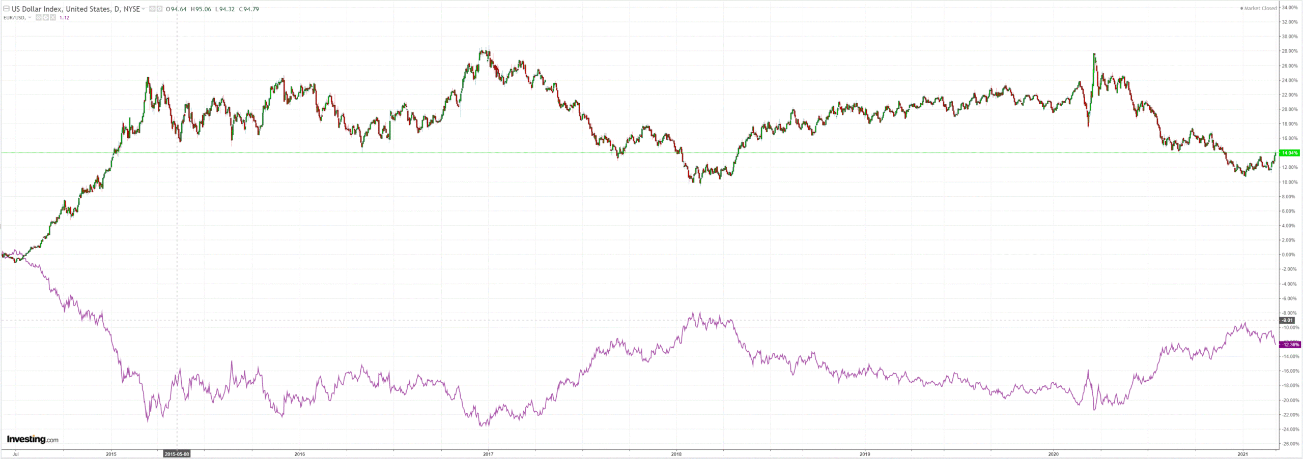 CNY and EUR are both rolling as the US develops its growth, yield and inflationary advantage. The market is still on the wrong side of the boat big time: