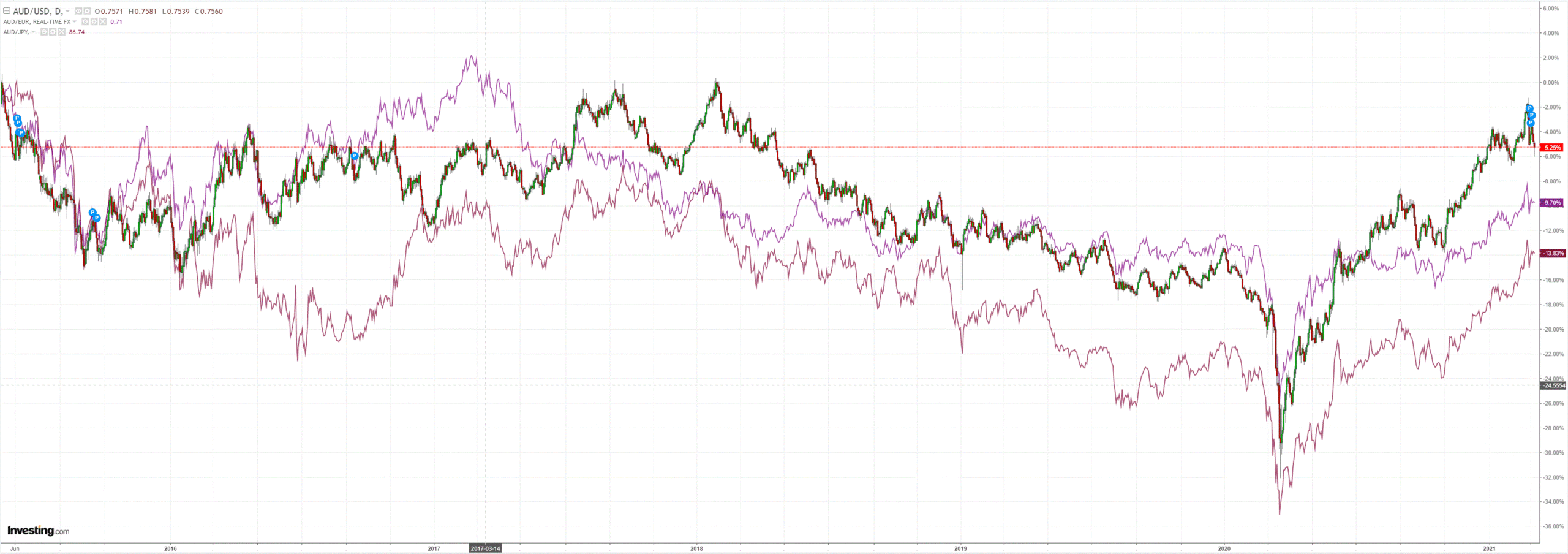 But the financial reflation that had everybody and the kitchen sink buying commodities and the AUD is reversing. Even more quickly than I have discussed for the past few months.