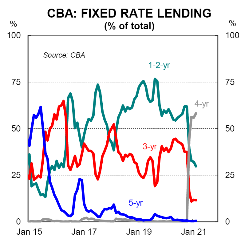More than half of all fixed rate borrowing is occurring at a 4 year time horizon. Around a quarter is 2 years or less.