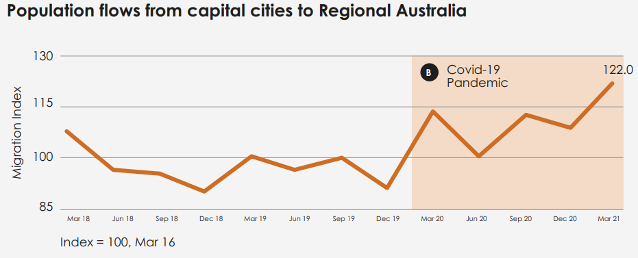 Regional migration is at its highest since 2018, according to a report by the Commonwealth Bank and the Regional Australia Institute, with regional migration up 7% cent in the March quarter when compared to the same period in 2020.