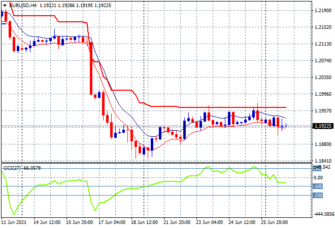 Currency markets remain in a holding pattern with USD again unable to assert itself against any of the majors from their current path, as Euro declines slightly to remain just above the 1.19 handle overnight. While another rollover is always possible, watch for any break above trailing four hourly ATR resistance above to define a new trend higher: