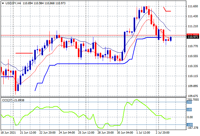The USDJPY pair is hanging on as well after completely reversed its breakout from Friday night with a retracement back to four hourly ATR support just below the 111 handle still holding here. There is still the possibility that if risk markets here in Asia do not respond to the Wall Street rally this could produce more Yen safe haven buying: