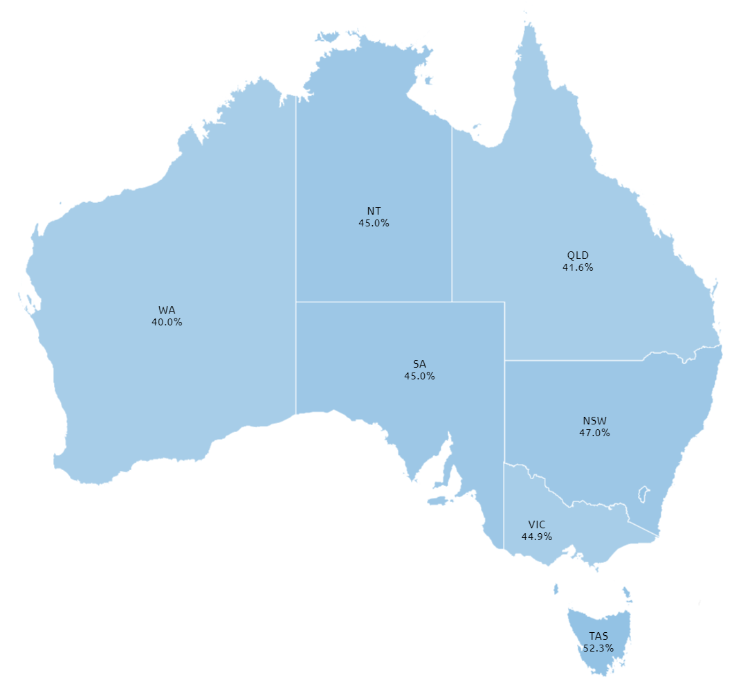 44.7% of Aussies at least partially vaccinated.
