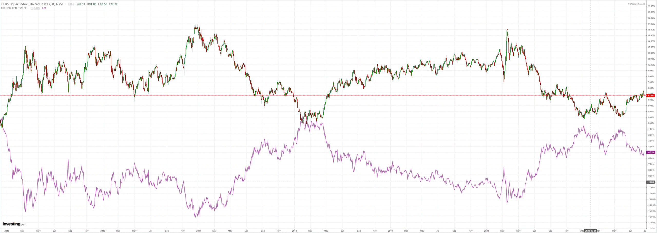 Forex markets have jackknifed. Sorting out why is no mean feat. DXY was soft again but is still holding support at previous resistance. EUR was up: