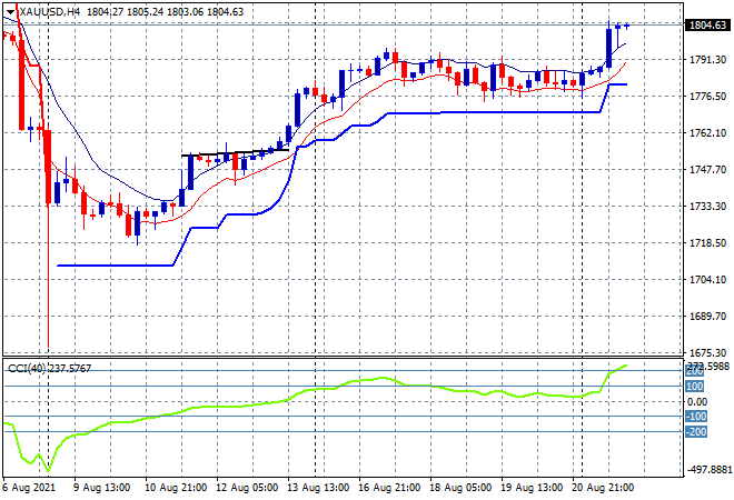 Last night saw the risk mood remain buoyant as more US FDA approvals of vaccines and a series of flash PMI prints nearly confirming expectations that the Fed won’t taper as quickly as expected. Wall Street led by tech stocks rallied the hardest while the USD was sold off across the board with beleaguered commodity currencies putting in good returns. Oil saw a big 5% plus rally on the news while gold broke through the $1800USD per ounce barrier with copper prices also recovering in London.