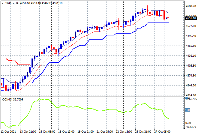 Eurostoxx and S&P futures are dead flat as we head into the London session, with the four hourly chart of the S&P500 showing price just hovering above short term ATR support at the 4530 point level after stalling out last night – big catalysts to get it moving again tonight: