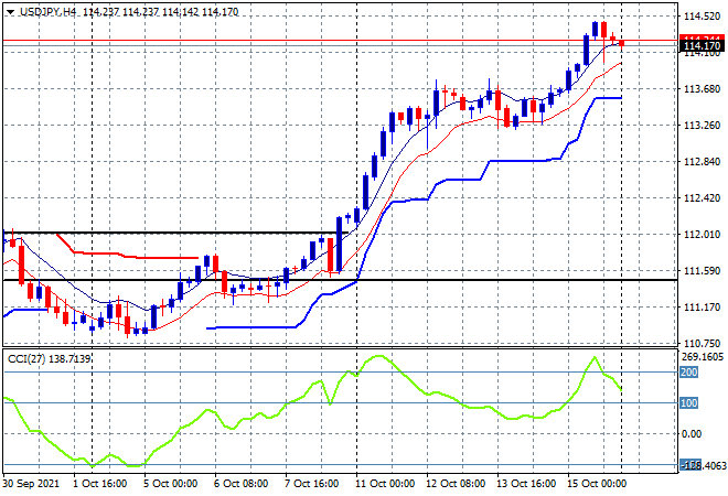 Yet another solid night of corporate earnings on Wall Street has kept risk appetites full with a fine finish to the trading week on Friday night. The USD actually finished even against the majors and commodity currencies, with the defensive Yen underperforming while Aussie and Euro ceased their rebound promptly. The bond market actually lifted slightly across the curve in response to the stronger than expected US retail sales print, while commodities were mixed as WTI and Brent futures were up 1%, copper lifting more than 2% while gold was flummoxed despite the weak USD trend with a return to weakness as traders abandoned the surge to get back above the $1800USD per ounce level.