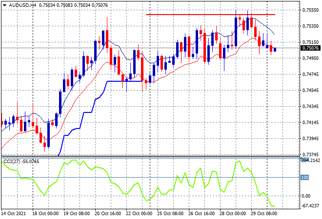 Chinese shares are again mixed with divergent fortunes as the Shanghai Composite puts on 0.2% during the afternoon session, currently at 3554 points while the Hang Seng Index is down nearly 1% as it continues its rollover from last week, currently at 25123 points. Japanese markets have rebounded sharply on the election with the Nikkei 225 shooting more than 2.5% higher to close at 29615 points, helped by the USDJPY pair which has put in a new weekly high to be slightly above the 114 barrier that it tried to climb all of last week: