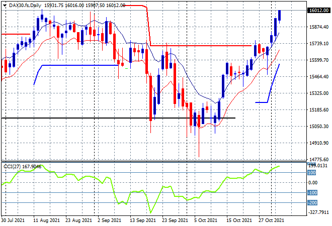Australian stocks were the standout however with the ASX200 rallying nearly 1% to take back all of the previous losses to almost get back above the 7400 point level. SPI futures are up nearly 0.5% or just over 30 points as we see another attempt at breaching that natural resistance zone with daily momentum positive, but not yet overbought despite a desire to return to the former highs in August, as short term support builds strongly here: