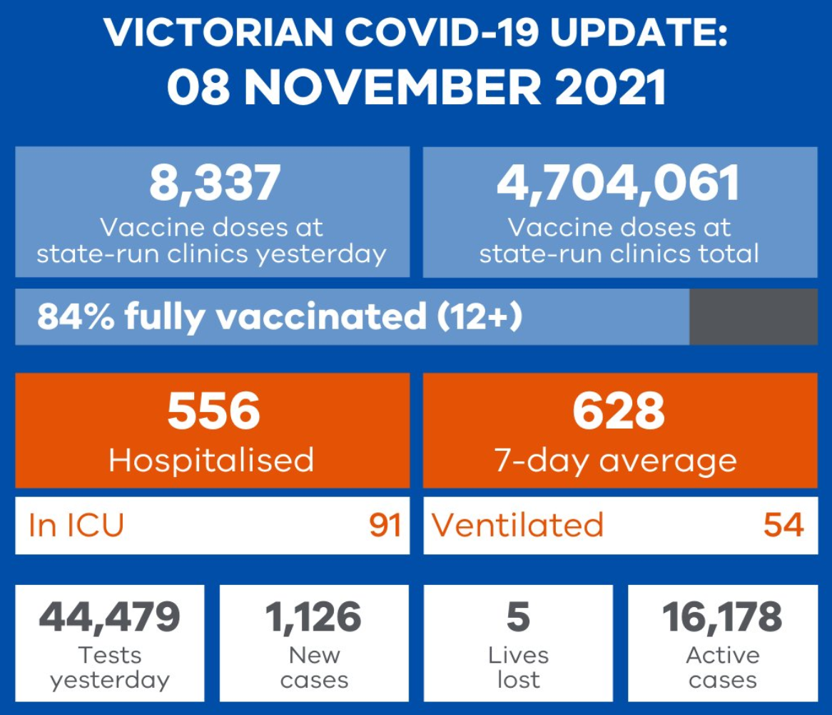 Victoria has recorded 1126 w locally acquired COVID cases over the past 24 hours alongside five deaths: