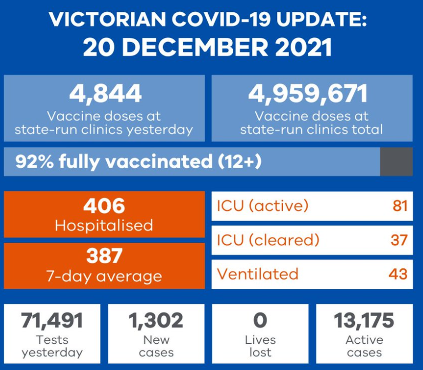 By comparison, Victoria recorded 1302 new cases and zero deaths: