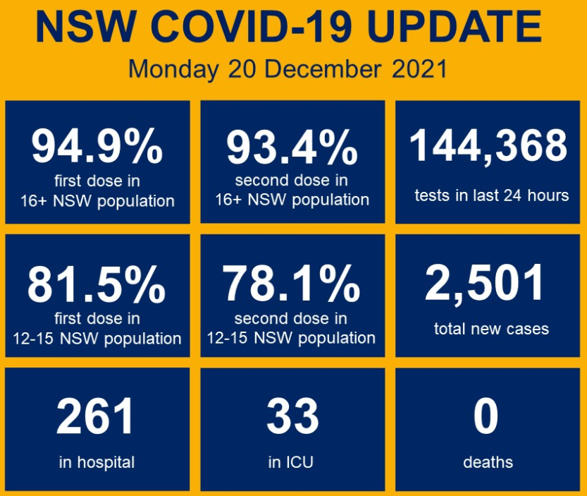 NSW recorded another 2501 new COVID cases and zero deaths over the past 24 hours: