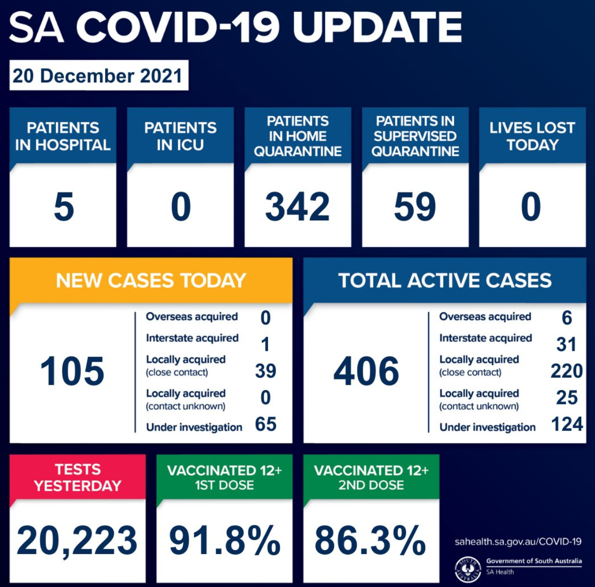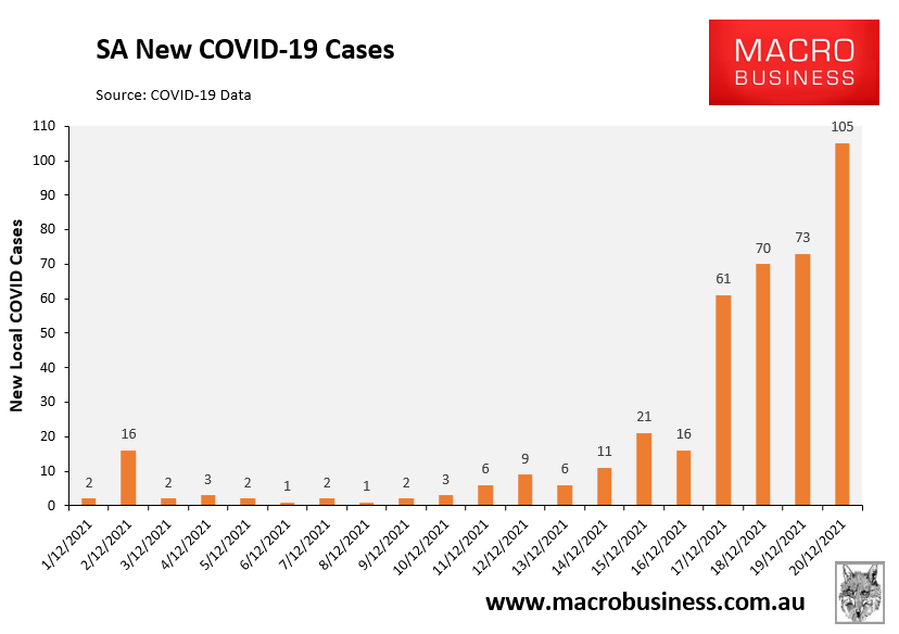 South Australia has recorded 105 new COVID cases, taking total active cases to 406: