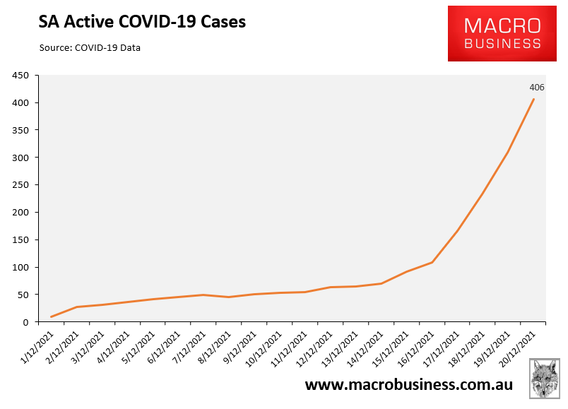 The below charts plot the rise in cases across South Australia: