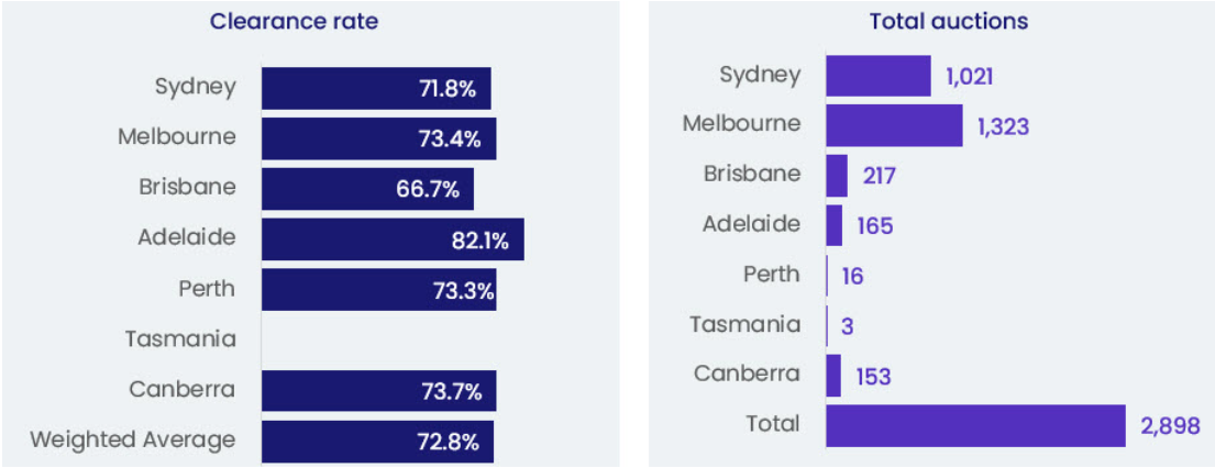 Last weekend, the nation’s auction market kicked into higher gear with 2,898 auctions held across the combined capital cities and a final clearance rate of 72.8% recorded: