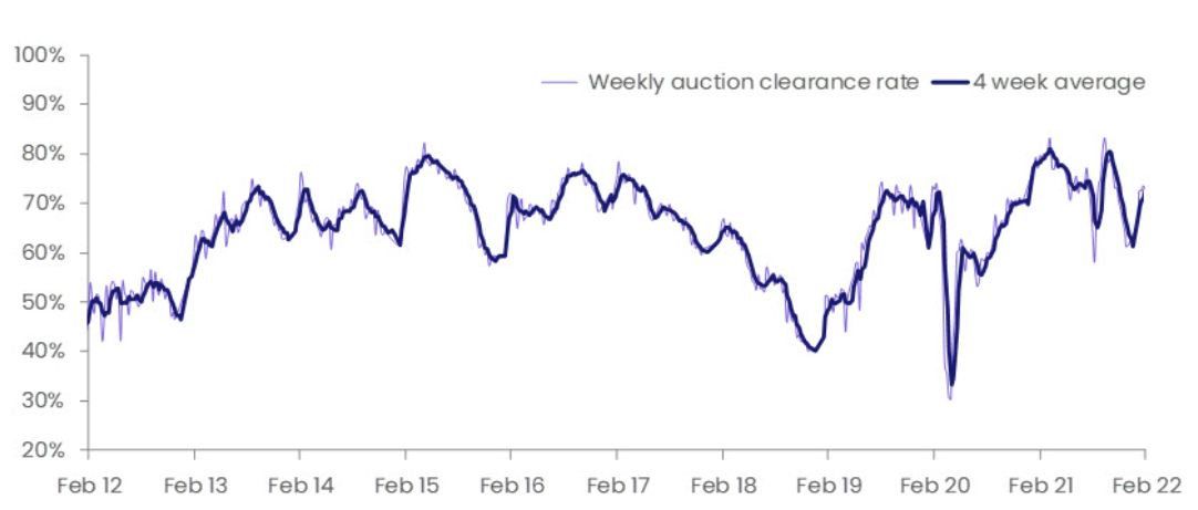 Despite the high volumes, the nation’s clearance rate has firmed over recent weeks: