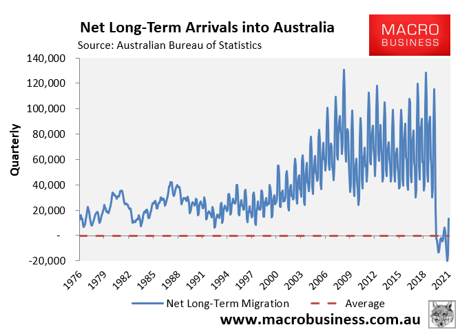 After two years in the red, Australia’s immigration has turned positive following the opening of the international border to ‘skilled’ workers, international students and working holiday makers in November.