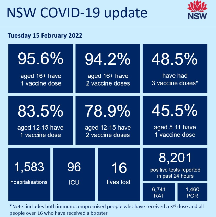 NSW recorded another 8201 new COVID cases and 16 deaths: