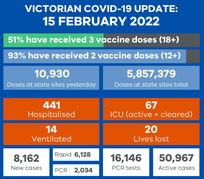 Victoria recorded another 8162 new COVID cases and 20 deaths: