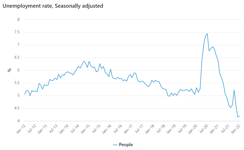 The Australian Bureau of Statistics (ABS) has just released labour force data for January, with Australia’s headline unemployment rate remaining at its 2008 low of 4.2%: