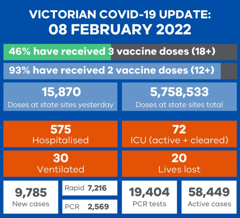 Victoria recorded 9,785 new cases and 20 deaths: