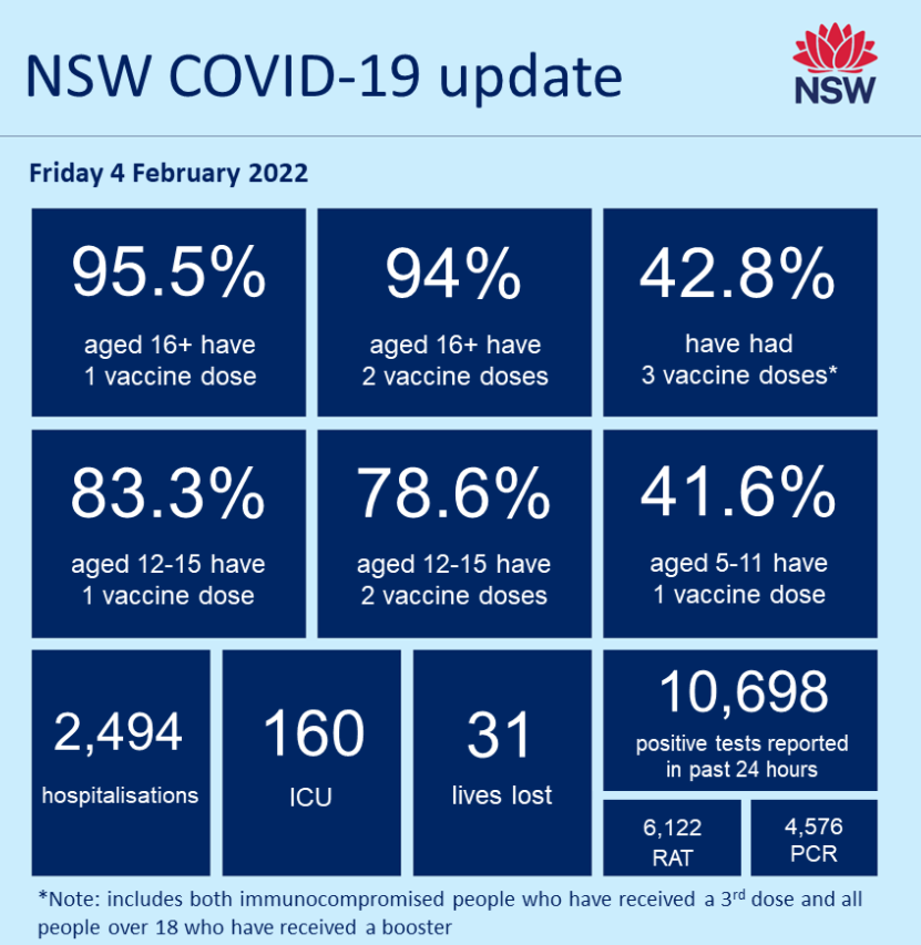 NSW has recorded 10,698 new COVID infections and 31 deaths: