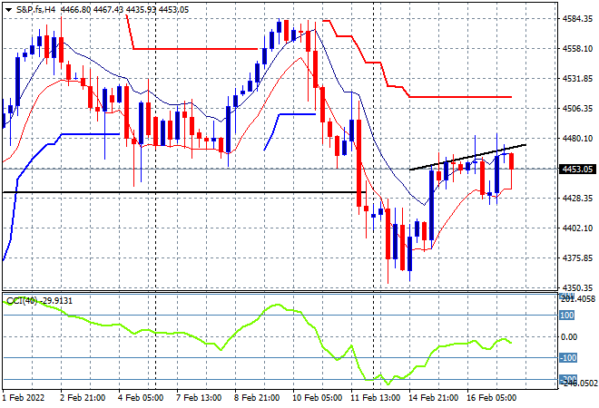 Eurostoxx and Wall Street futures are not moving much as we head into the London open, with the S&P500 four hourly chart showing price wanting very slowly putting in a series of higher highs, but momentum is modest so it remains to be seen if it can maintain its position just above the previous support/resistance zone and the key psychological 4400 point level: