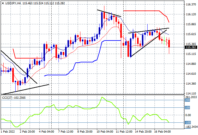 Mainland Chinese shares are fairly mixed going into the close with the Shanghai Composite up only 0.2% to 3472 points while the Hang Seng Index has reversed yet again, down 0.4% to 24628 points. Japanese stock markets are also pulling back with the Nikkei 225 dropping back 0.7% to close at 27244 points, while the USDJPY pair is falling back in equal fashion, almost touching the 115 handle as it continues its breakdown from overnight: