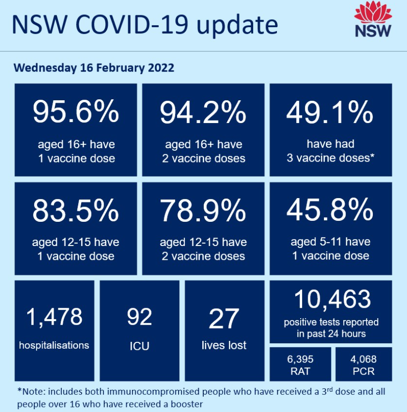 NSW recorded another 10,463 new COVID cases and 27 deaths: