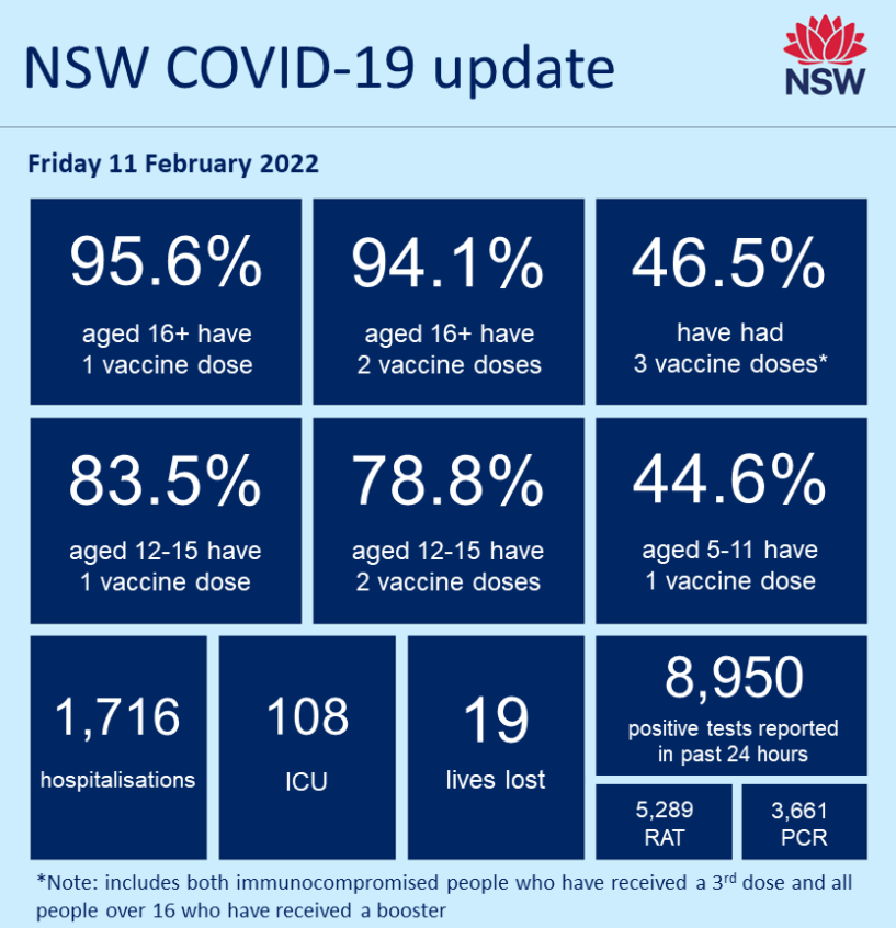 NSW has recorded another 8,950 new COVID cases and 19 deaths: