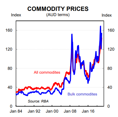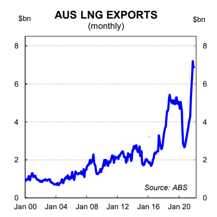 Notwithstanding, domestic shareholders of Australia’s gas exporters will benefit from a lift in energy prices. And the budget bottom line also improves from higher export prices through the company taxes and royalties channel.