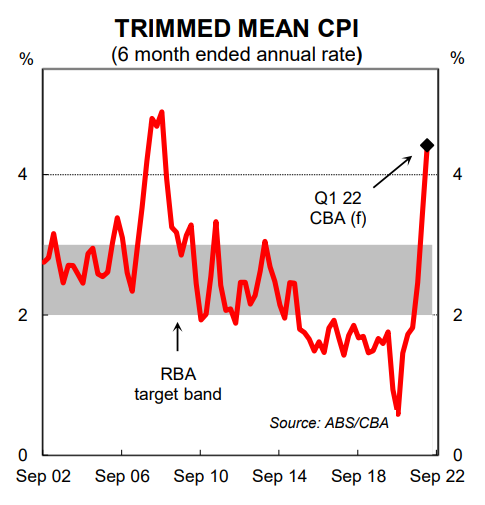 We expect a red hot Q1 22 CPI that will take the underlying rate of inflation to ~3.4% (4.5% on a six month annualised basis). We believe that an underlying inflation print in line with our forecasts means that the RBA will not need a further CPI report to conclude that inflation is “sustainably within the target range”. The RBA will simply need to be satisfied that wages growth is moving towards the desired levels and the economy is at full employment.