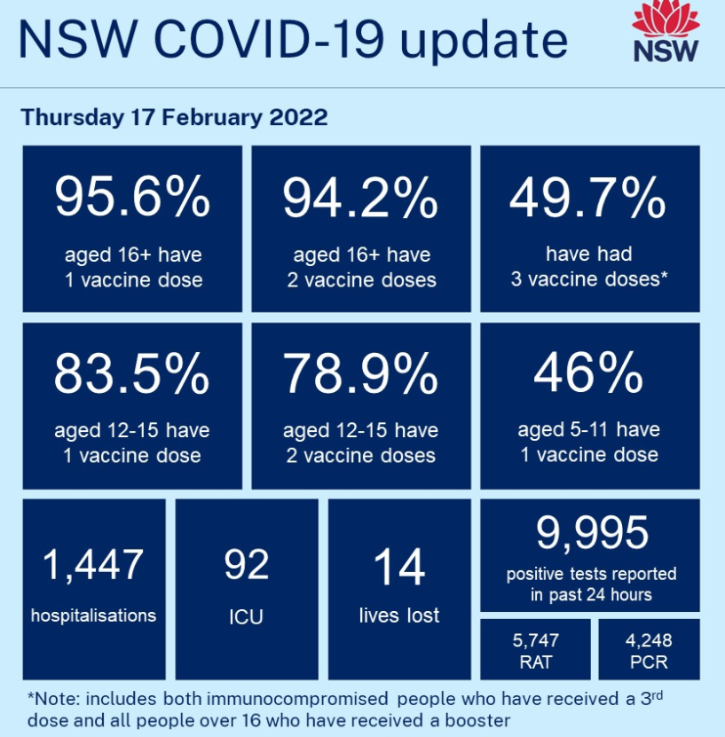 NSW recorded another 9,995 new COVID cases and 14 deaths: